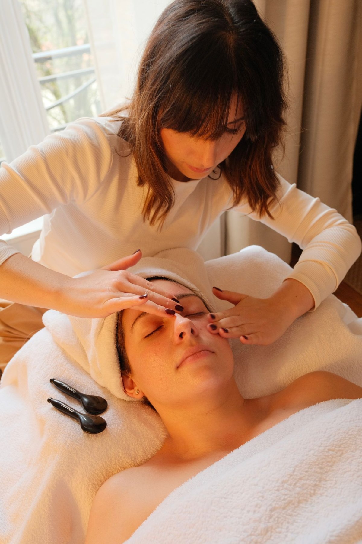Soin complet du regard, réalisé avec sérum, patchs, massages manuels et spoon de soin.